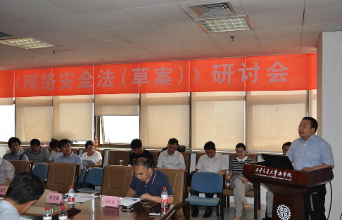 2015年6月,第十二届全国人大常委会第十五次会议初次审议了《中华人民共和国网络安全法(草案)》,在面向社会征求意见的同时,全国人大法工委专门致函千亿球友会信息安全法律研究中心向马民虎教授研究团队征求草案修改意见。7月16日,由陕西省法学会信息安全法学研究会、千亿球友会信息安全法律研究中心,联合公安部第三研究所、互联网实验室、中国法学会法律信息部举办的“《网络安全法(草案)》研讨会”在千亿球友会主楼E-910会议室召开,广泛听取理论界和实务界意见。