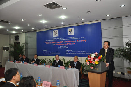 作为教育部2011学校特色外专项目之一,首届“丝绸之路国际经济法高级国际研讨班系列——中国入世十年WTO法国际研讨班与圆桌讨论会”于11月4日上午在西安交大科学馆207隆重开幕。我国原驻英国大使马振岗、商务部条法司原司长张玉卿、世界贸易组织规则司司长Johann Human、瑞士伯尔尼大学世界贸易研究所所长Thomas Cottier、西安交大副校长卢天健、陕西省法学会研究部主任魏清利等出席开幕式。法学院院长兼丝绸之路国际法与比较法研究所所长单文华教授主持开幕式。