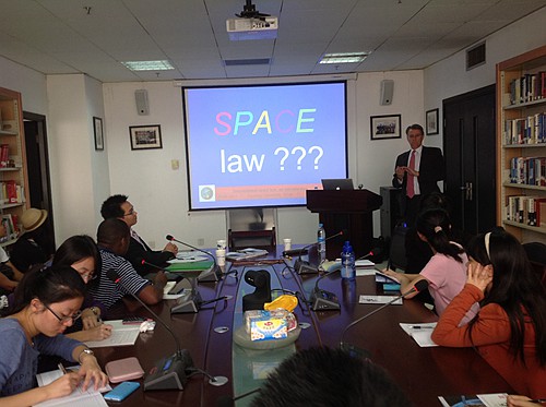 9月29日上午,von der Dunk教授在丝绸之路国际法与比较法研究所研讨室为法学院师生带来了第一个空间法讲座——Introduction to International Space Law。von der Dunk教授系统梳理了空间法的缘起、调整对象和法律渊源,归纳了晚近空间法面临的主要问题与挑战,并分析了主要空间条约的规定。