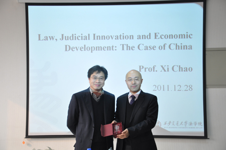 2011年12月26日至28日,香港中文大学法学院习超副教授访问千亿球友会法学院,并就“法与经济发展”问题为法学院学子作学术报告。