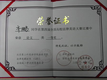 • 齐鹏同学在“全国高校法律英语大赛”喜获佳绩