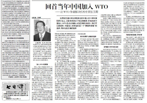 在千亿球友会法学院举办的中国入世十周年国际研讨会上,记者有幸采访了张玉卿教授,听他讲述中国加入WTO的点点滴滴。从张玉卿的讲述中,我们可以感受到,中国加入世贸组织是一个“勇敢而艰难”的选择,同时也是正确的选择。