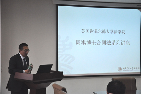 应法学院“腾飞人才计划”特聘教授刘桥的邀请,英国谢菲尔德大学法学院周祺博士近日来访。在为期10天的访问过程中,周祺博士为法学院师生带来了三场精彩的学术报告,并与法学院领导就加强双方合作进行了实质性的会谈。