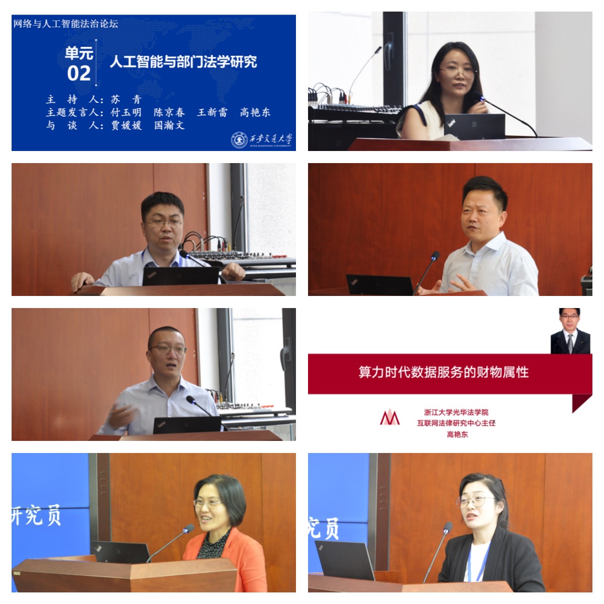 “让智能助力司法”是第四单元“智慧司法与纠纷解决”的突出特色。本单元由千亿球友会法学院杜军强副教授主持。上海交通大学凯原法学院教授、法律与认知科学研究中心主任李学尧以自动守法的人工智能系统研发为例,阐释了认知神经科学在人工智能领域的应用。浙江理工大学政法学院特聘副教授郭兵基于公益诉讼实践,认为私益诉讼现阶段对保护个人信息的作用有限,公益诉讼应作为个人信息司法保护的主要方式。华南农业大学人文与法学学院赵蕾副教授饱含激情地阐述了ODR(在线纠纷解决平台)的发展历史与目前的状况,畅想了“人机组合解决纠纷”的未来前景。华东政法大学互联网法治研究院特聘副研究员周翔老师介绍了智慧法院的生成机制及未来趋势,提出智慧法院的研究可为其他法治部门信息化研究提供借鉴。在与谈环节,桂林电子科技大学法学院赛铮副教授从保险科技监管研究角度,肯定了线上纠纷解决机制运用到保险合同纠纷中的意义,同时强调更应该关注现阶段其在实务中的落实程度。东南大学刑法学博士生陈禹衡从侵犯公民个人信息罪入手,认为目前在具体适用层面上存在扩大化倾向,刑法应该力求保持谦抑性。