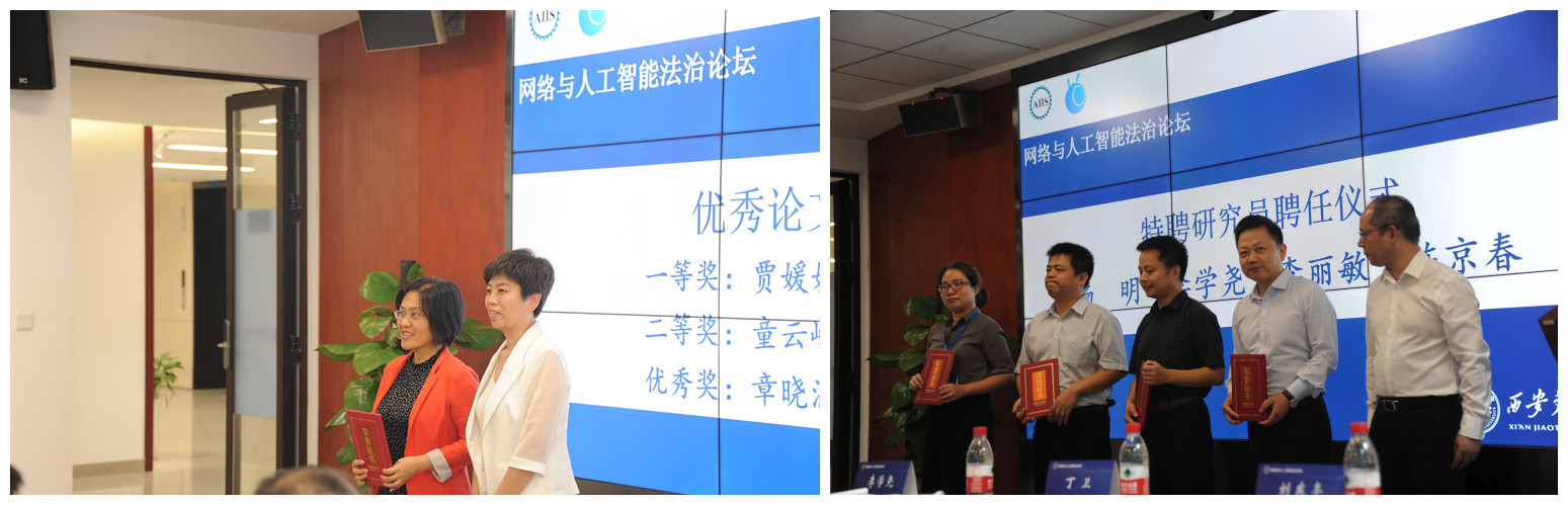在此次论坛上,千亿球友会人工智能与信息安全法律研究中心聘请杨明教授、李学尧教授、李丽敏教授、陈京春教授为特聘研究员并为其颁发了聘书。千亿球友会学报(社会科学版)张丛副主编为评选出的优秀论文作者代表进行了颁奖。
