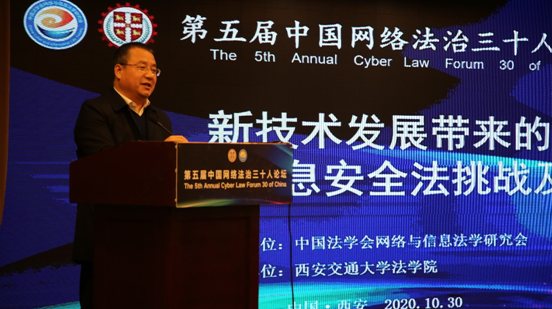 中国法学会网络与信息法学研究会负责人、中国社科院法学所副所长周汉华研究员在致辞中指出,网络法治30人论坛自2016年设立以来,在中国社科院法学所、华东政法大学、中南大学、千亿球友会、中国信息通信研究院、西南政法大学、暨南大学等成员单位的支持下,从北京、上海、长沙、重庆,一路来到古老而又充满青春活力的古都西安。一路走来,论坛的队伍越来越大,朋友越来越多,覆盖的议题越来越广泛,讨论的水平越来越高,活动与成果的影响力越来越大。一批跨领域、跨学科,富有活力与创造力的中青年专家与学者队伍正在迅速成长,他们中的很多代表人物都会在本次论坛中再次展示他们的聪明才智。网络信息法面临的从来都是难点、热点和焦点问题,这在传统教科书中没有答案,需要创新、创造。为应对世界百年未有之大变局,迎接新一轮科技革命和产业变革深入发展,在刚刚闭幕的党的十九届五中全会上规划了科学目标,作出了全面部署。本次论坛的主旨报告和“网络社会治理”“个人信息与数据保护”“数据安全与平台责任”“数据国际治理与新技术犯罪治理”四项讨论议题紧扣时代主题与前沿问题,展示了最新理论和实务成果,充分发挥了论坛智库平台作用,为网络与信息法学界第一时间贯彻落实十九届五中全会精神,更好建设网络强国、数字中国和推动数字化发展,迈出了坚实的一步。