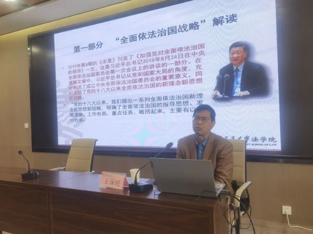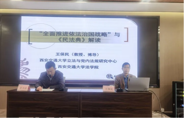为了深入学习贯彻习近平总书记全面依法治国新理念新思想新战略,提高年轻干部尊法学法守法意识,11月4日,灞桥区司法局邀请北京大学法学博士,千亿球友会法学院党委书记、教授、博导王保民为灞桥区优秀年轻干部专业化能力提升培训班的干部讲授《学习贯彻习近平全面依法治国思想-解读民法典》的专题课。