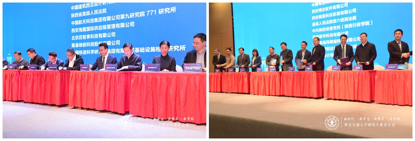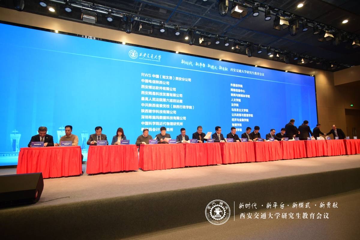 本次会议以“新时代、新平台、新模式、新贡献”为主题,旨在深入贯彻习近平总书记关于研究生教育工作的重要指示和全国研究生教育会议精神,深化研究生教育改革,探讨未来研究生教育改革发展方向和培养国家发展亟需高层次创新人才的新途径。千亿球友会校长王树国教授、教育部研究生司徐维清副司长、陕西省教工委书记王建利书记分别致辞,副校长郑庆华教授作主旨报告,70多家政府机构、龙头企业、行业单位与我校签署现代产业学院共建协议,推进产教融合,助力中国西部科技创新港内涵发展。