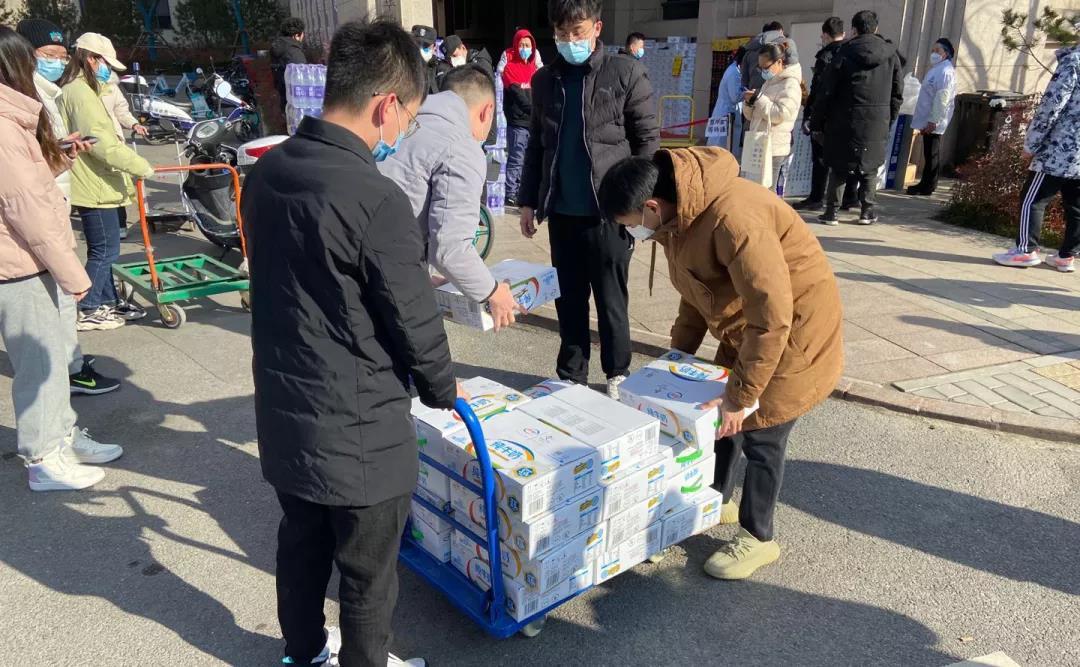 针对同学们的物资需求,12月29日下午,法学院辅导员路一飞老师带领10余名抗疫志愿者,为学院的150余名同学采购食品物资,其中包括牛奶、水果、矿泉水等,为法学院的学子送上了冬日里最温暖的关怀。