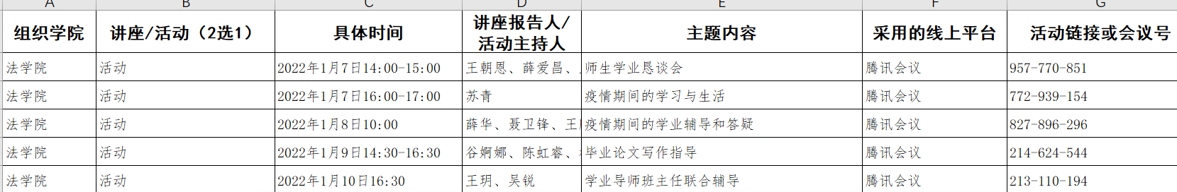 2021年年末,新冠疫情在西安爆发。面对来势汹汹的疫情,法学院积极应对,面向各年级本科生及时安排丰富的线上答疑辅导活动,组织开展系列讲座,与同学们共渡难关。学院重点关注学生的心理、学业等相关问题,及时收集、回应、协调学生日常学习生活中存在的突出问题,第一时间了解问题症结,针对性开展工作,营造积极向上的抗“疫”氛围。考虑到同学们在宿舍封闭期间遇到的学业问题,法学院共组织五十余场本科生课程答疑、线上讲座、专业认知和学业指导活动,同学们积极参与,充分展现我院师生“抗疫不松劲,教学不断线”的担当与风貌。