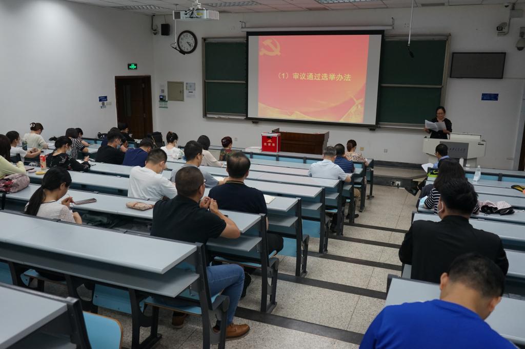 大会在庄严的国歌声中拉开序幕。首先,法学院第二届工会主席张弘代表上一届工会委员会作报告。张弘主席回顾了上一届工会委员会任期内,学院工会在党总支的领导下,组织全院教职工在教代会中踊跃提案,关注教职工的切身利益,大力支持学院、学校的发展;积极建设职工小家,为教职工提供舒适便利的工作环境;多次开展健步走、摄影展等活动,组织教职工参加学校组织的各类文体活动,丰富教职工课余生活,增强学院凝聚力。接着,张弘主席作工会会费使用情况报告,详细报告了其任期内每年工会会费的收支情况。随后,大会按照流程审议通过选举办法和监票人、计票人名单,选举产生了新一届工会委员会委员。