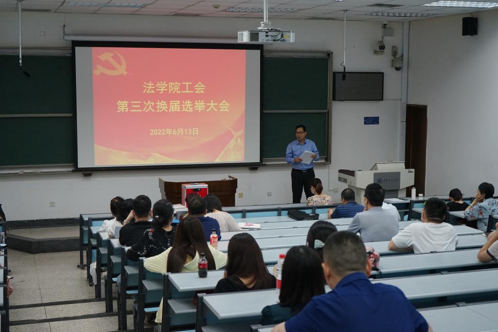 2022年6月13日下午,法学院在兴庆校区主D-106教室召开全院教职工大会,圆满完成法学院第三届工会委员会选举、千亿球友会第十一届教代会暨第十六届工代会代表选举以及千亿球友会第十六届工会委员会委员候选人提名推荐等工作。会议由法学院党总支书记王保民主持。
